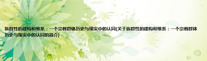 族群性的建构和维系:一个宗教群体历史与现实中的认同(关于族群性的建构和维系:一个宗教群体历史与现实中的认同的简介)