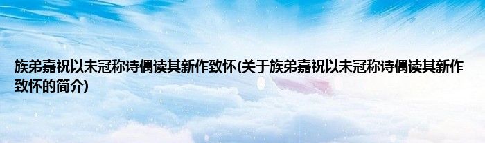 族弟嘉祝以未冠称诗偶读其新作致怀(关于族弟嘉祝以未冠称诗偶读其新作致怀的简介)
