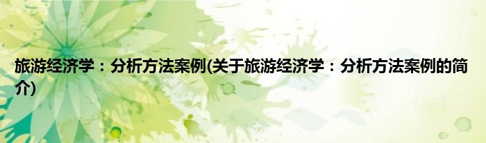 本文关于旅游经济学:分析方法案例的简介就讲解完毕,希望对大家有所帮助。