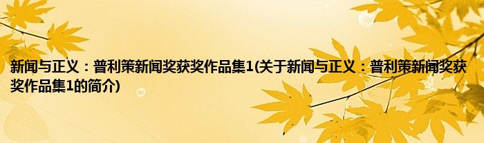 本文关于新闻与正义:普利策新闻奖获奖作品集1的简介就讲解完毕,希望对大家有所帮助。