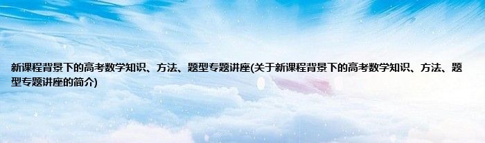 本文关于新课程背景下的高考数学知识、方法、题型专题讲座的简介就讲解完毕,希望对大家有所帮助。