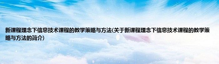 大家好,新课程理念下信息技术课程的教学策略与方法,关于新课程理念下信息技术课程的教学策略与方法的简介很多人还不知道,现在让我们一起来看看吧!