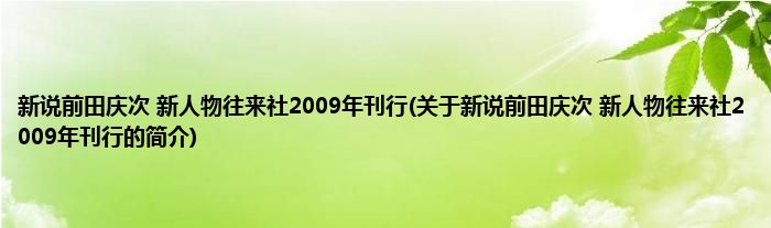 1、 《新说前田庆次(新人物往来社2009年刊行)》是中経出版出版的图书。