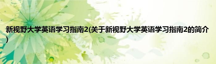 1、 《新视野大学英语学习指南2》是l> 2、 。 本文关于新视野大学英语学习指南2的简介就讲解完毕,希望对大家有所帮助。
