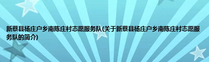 本文关于新蔡县杨庄户乡南陈庄村志愿服务队的简介就讲解完毕,希望对大家有所帮助。
