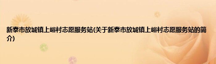 本文关于新泰市放城镇上峪村志愿服务站的简介就讲解完毕,希望对大家有所帮助。