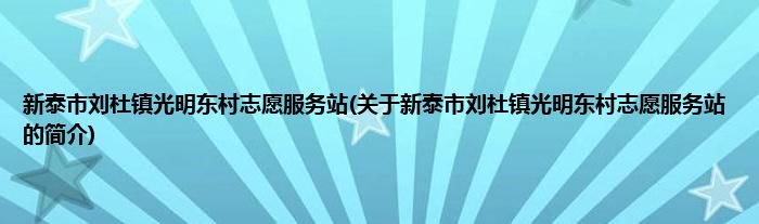 新泰市刘杜镇光明东村志愿服务站(关于新泰市刘杜镇光明东村志愿服务站的简介)