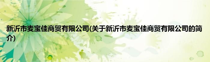 新沂市麦宝佳商贸有限公司(关于新沂市麦宝佳商贸有限公司的简介)
