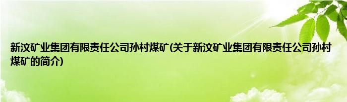 本文关于新汶矿业集团有限责任公司孙村煤矿的简介就讲解完毕,希望对大家有所帮助。