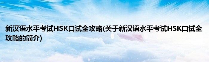 本文关于新汉语水平考试HSK口试全攻略的简介就讲解完毕,希望对大家有所帮助。