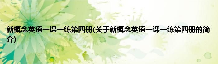 本文关于新概念英语一课一练第四册的简介就讲解完毕,希望对大家有所帮助。