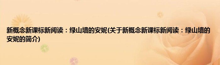 本文关于新概念新课标新阅读:绿山墙的安妮的简介就讲解完毕,希望对大家有所帮助。