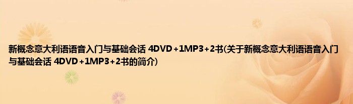 本文关于新概念意大利语语音入门与基础会话 4DVD+1MP3+2书的简介就讲解完毕,希望对大家有所帮助。