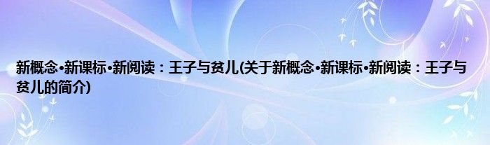 本文关于新概念·新课标·新阅读:王子与贫儿的简介就讲解完毕,希望对大家有所帮助。