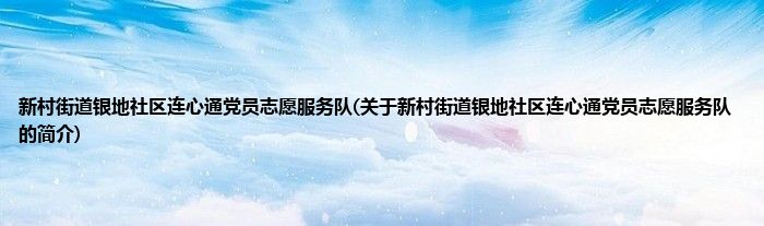 1、 新村街道银地社区连心通党员志愿服务队是由新村街道连心通党员志愿服务队领导下的志愿团体。