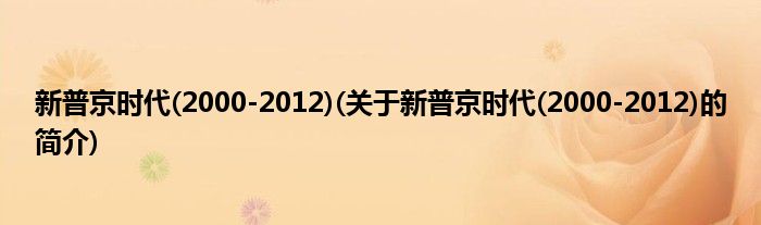 大家好,新普京时代,2000-2012,关于新普京时代,2000-2012的简介很多人还不知道,现在让我们一起来看看吧!