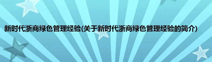 大家好,新时代浙商绿色管理经验,关于新时代浙商绿色管理经验的简介很多人还不知道,现在让我们一起来看看吧!