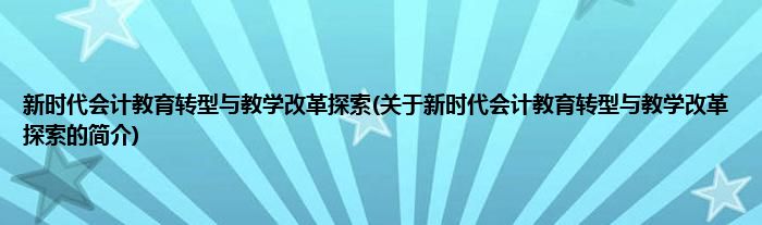 大家好,新时代会计教育转型与教学改革探索,关于新时代会计教育转型与教学改革探索的简介很多人还不知道,现在让我们一起来看看吧!
