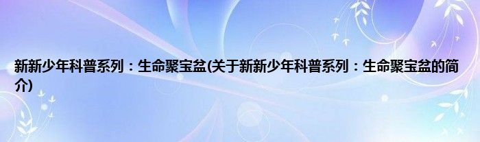 大家好,新新少年科普系列:生命聚宝盆,关于新新少年科普系列:生命聚宝盆的简介很多人还不知道,现在让我们一起来看看吧!