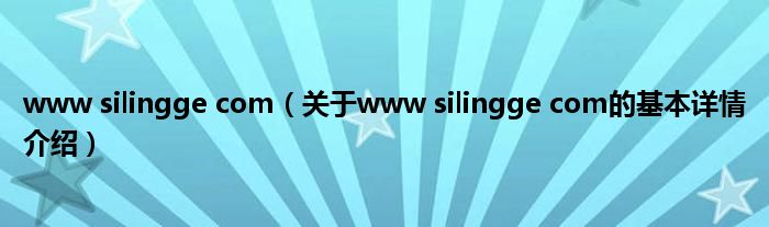 wwwsilinggecom(关于wwwsilinggecom的基本详情介绍)