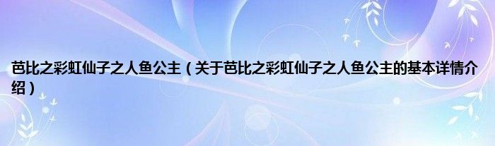 本文关于芭比之彩虹仙子之人鱼公主的基本详情介绍就讲解完毕,希望对大家有所帮助。