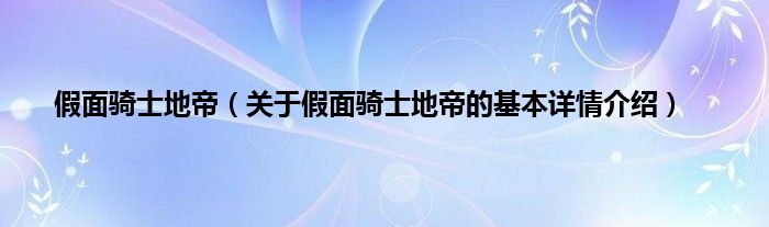 本文关于假面骑士地帝的基本详情介绍就讲解完毕,希望对大家有所帮助。