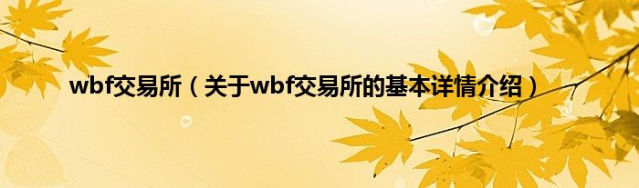 本文关于wbf交易所的基本详情介绍就讲解完毕,希望对大家有所帮助。