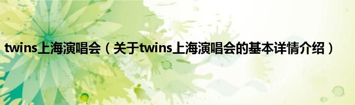 本文关于twins上海演唱会的基本详情介绍就讲解完毕,希望对大家有所帮助。