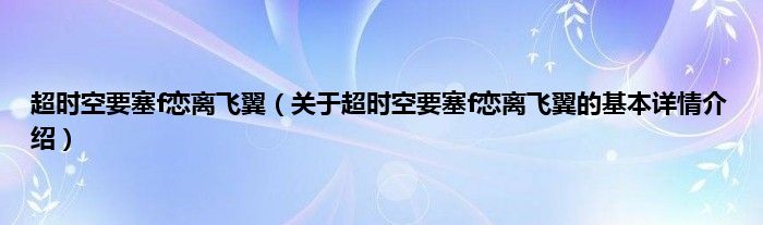 本文关于超时空要塞f恋离飞翼的基本详情介绍就讲解完毕,希望对大家有所帮助。