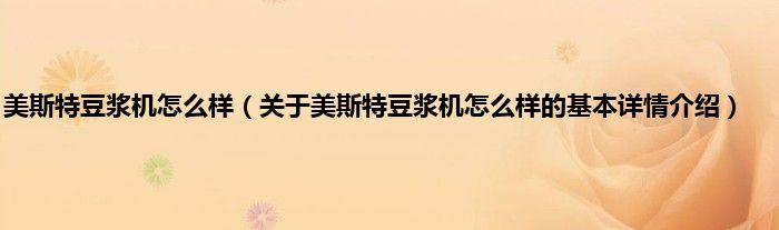 本文关于美斯特豆浆机怎么样的基本详情介绍就讲解完毕,希望对大家有所帮助。