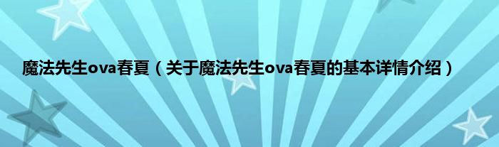 本文关于魔法先生ova春夏的基本详情介绍就讲解完毕,希望对大家有所帮助。