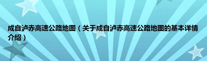 本文关于成自泸赤高速公路地图的基本详情介绍就讲解完毕,希望对大家有所帮助。