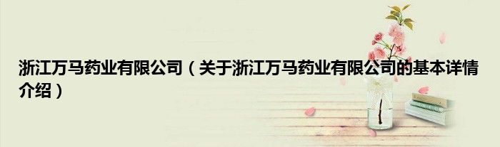 本文关于浙江万马药业有限公司的基本详情介绍就讲解完毕,希望对大家有所帮助。