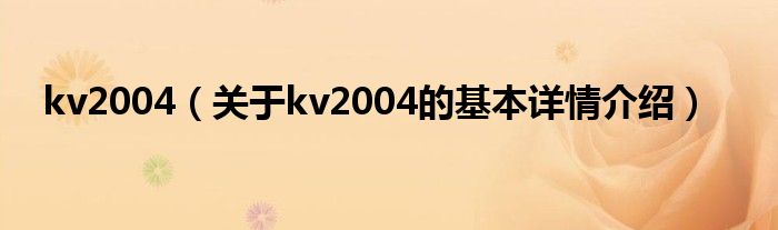 大家好我是小蝌蚪,kv2004,关于kv2004的基本详情介绍很多人还不知道,那么现在让我们一起来看看吧!
