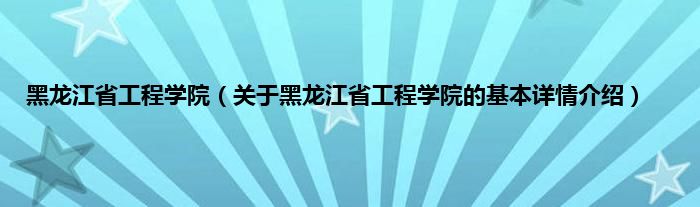 本文关于黑龙江省工程学院的基本详情介绍就讲解完毕,希望对大家有所帮助。