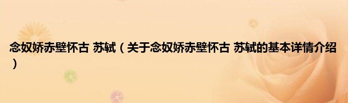 本文关于念奴娇赤壁怀古 苏轼的基本详情介绍就讲解完毕,希望对大家有所帮助。