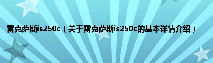 本文关于雷克萨斯is250c的基本详情介绍就讲解完毕,希望对大家有所帮助。