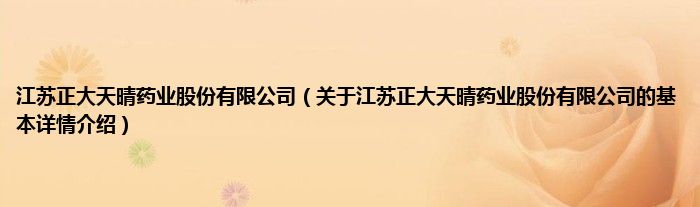 本文关于江苏正大天晴药业股份有限公司的基本详情介绍就讲解完毕,希望对大家有所帮助。