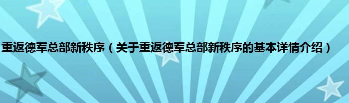 本文关于重返德军总部新秩序的基本详情介绍就讲解完毕,希望对大家有所帮助。