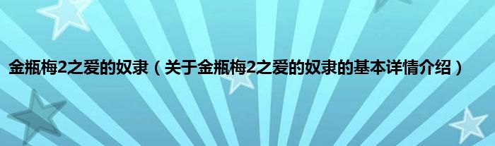 本文关于金瓶梅2之爱的奴隶的基本详情介绍就讲解完毕,希望对大家有所帮助。