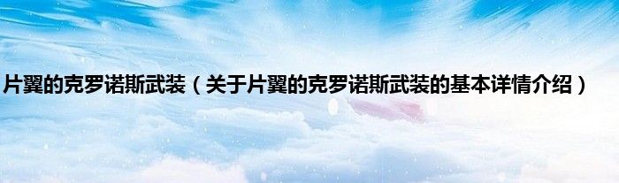 本文关于片翼的克罗诺斯武装的基本详情介绍就讲解完毕,希望对大家有所帮助。