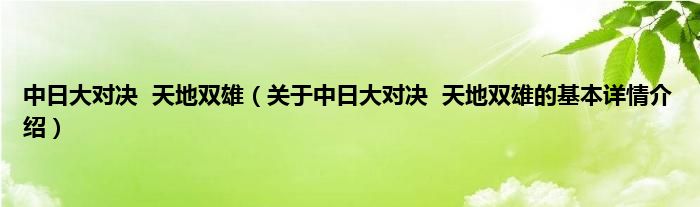 本文关于中日大对决 天地双雄的基本详情介绍就讲解完毕,希望对大家有所帮助。