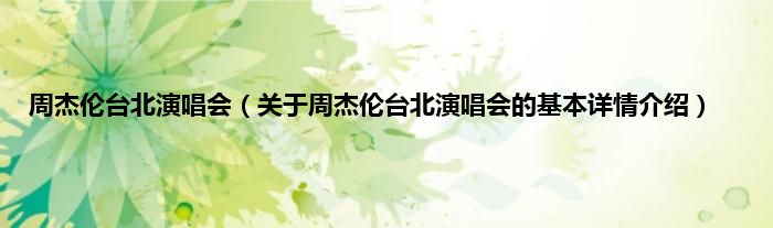 本文关于周杰伦台北演唱会的基本详情介绍就讲解完毕,希望对大家有所帮助。