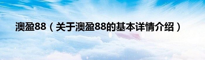 本文关于澳盈88的基本详情介绍就讲解完毕,希望对大家有所帮助。