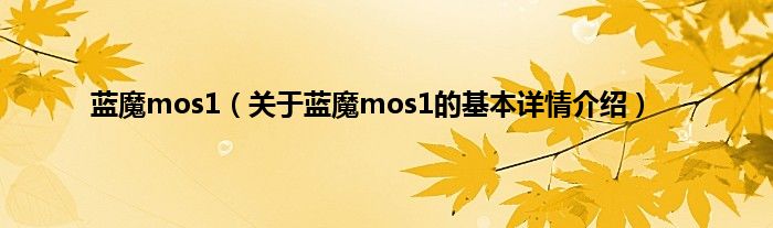 本文关于蓝魔mos1的基本详情介绍就讲解完毕,希望对大家有所帮助。