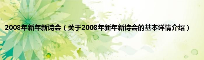 本文关于2008年新年新诗会的基本详情介绍就讲解完毕,希望对大家有所帮助。