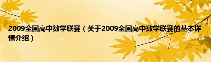 本文关于2009全国高中数学联赛的基本详情介绍就讲解完毕,希望对大家有所帮助。