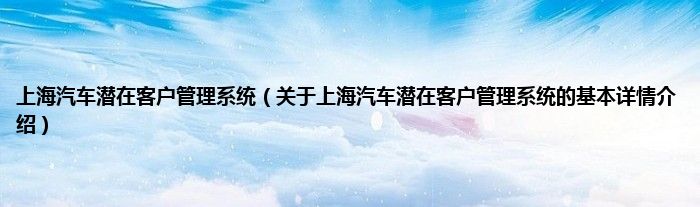 本文关于上海汽车潜在客户管理系统的基本详情介绍就讲解完毕,希望对大家有所帮助。