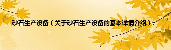 本文关于砂石生产设备的基本详情介绍就讲解完毕,希望对大家有所帮助。