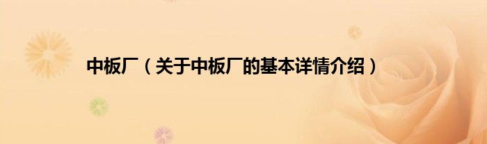 本文关于中板厂的基本详情介绍就讲解完毕,希望对大家有所帮助。